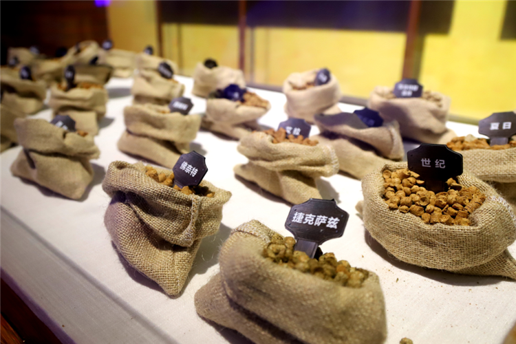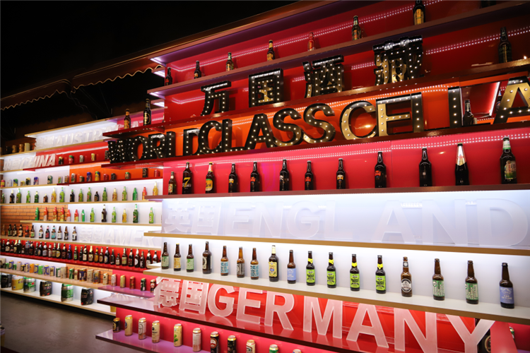 ▲“萬(wàn)國(guó)酒藏”展區(qū)展出來(lái)自世界各國(guó)的上百種啤酒。