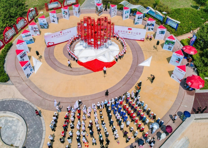 2020年,青島市紅十字會(huì)積極參與青島城市品質(zhì)改善提升攻勢(shì),與青島市自然資源和規(guī)劃局、中國(guó)雕塑院青島分院等單位達(dá)成了“將宣傳城市大愛(ài)與助力城市社區(qū)微更新相融合,創(chuàng)建具有示范意義的城市公共空間精品工程”的基本思路,探索將紅十字公益文化和雕塑藝術(shù)結(jié)合,融入城市公園、生活社區(qū)。邀請(qǐng)青島大學(xué)美術(shù)學(xué)院裝雕教研室雷虹主任設(shè)計(jì)創(chuàng)作了“山海情深 愛(ài)心匯聚”主題雕塑,西海岸新區(qū)工委、管委積極協(xié)調(diào),青島黃發(fā)集團(tuán)定向捐贈(zèng),共同促成主題雕塑落戶城市陽(yáng)臺(tái)景區(qū)海螺廣場(chǎng),并將該廣場(chǎng)更名為青島愛(ài)心廣場(chǎng),6月22日儀式正式舉辦。